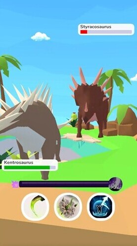 3、物种交锋:切换为Kentrosaurus,与Styracosaurus等对手战斗,推进关卡。