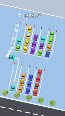 2、停车场颜色分拣任务:停车场停放着多种颜色的汽车,玩家需通过移动车辆完成颜色统一的停放目标,在混乱的停车场景中梳理秩序,感受分类整理的成就感。